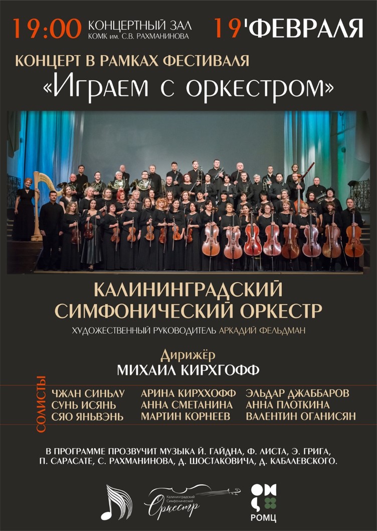 19 февраля на сцене Калининградского областного музыкального колледжа им. С.В. Рахманинова состоится уникальный концерт в рамках I детско-юношеского фестиваля «Играем с оркестром». Талантливые молодые музыканты, уже успевшие покорить сердца слушателей и стать лауреатами престижных музыкальных конкурсов, выйдут на одну сцену с Калининградским симфоническим оркестром!