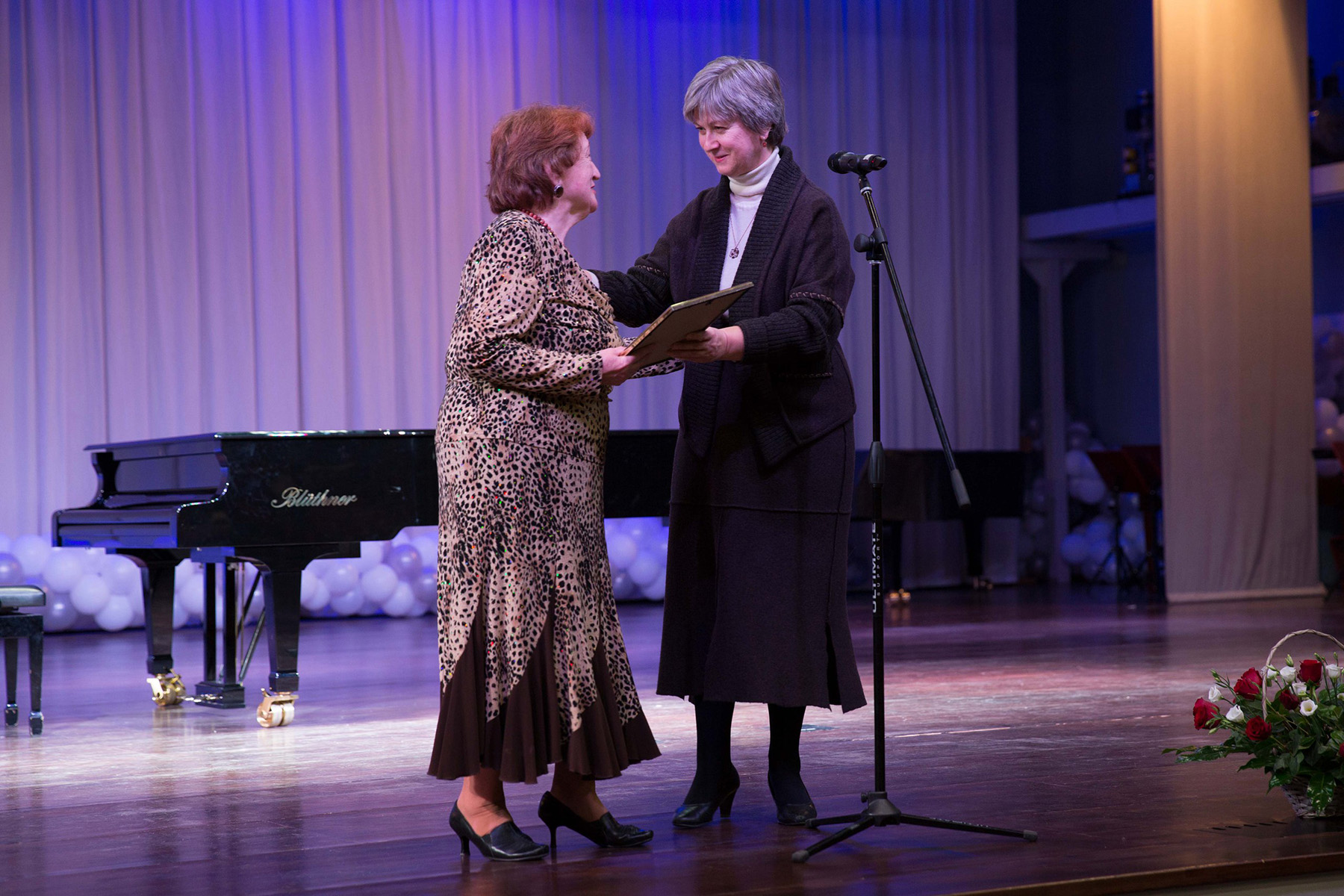 Интерес вызвало выступление Председателя Калининградского отделения союза писателей, поэта Бориса Нухимовича Бартфельда, который зачитал приветственное послание Ю. Г. Зиновьевой от своей дочери – Александры Бартфельд – аспирантки Берлинской Академии музыки – и прочитал собственное стихотворение «Звук». Украшением концерта стало выступление Заслуженного артиста РФ Николая Горлова в дуэте со студенткой 3 курса колледжа Анной Бочаровой и особенно – с юбиляршей, Заслуженным работником культуры РФ Юлией Георгиевной Зиновьевой, которые исполнили романсы русских композиторов С. В. Рахманинова «В моей душе» и М. И. Глинки «Сомнение».