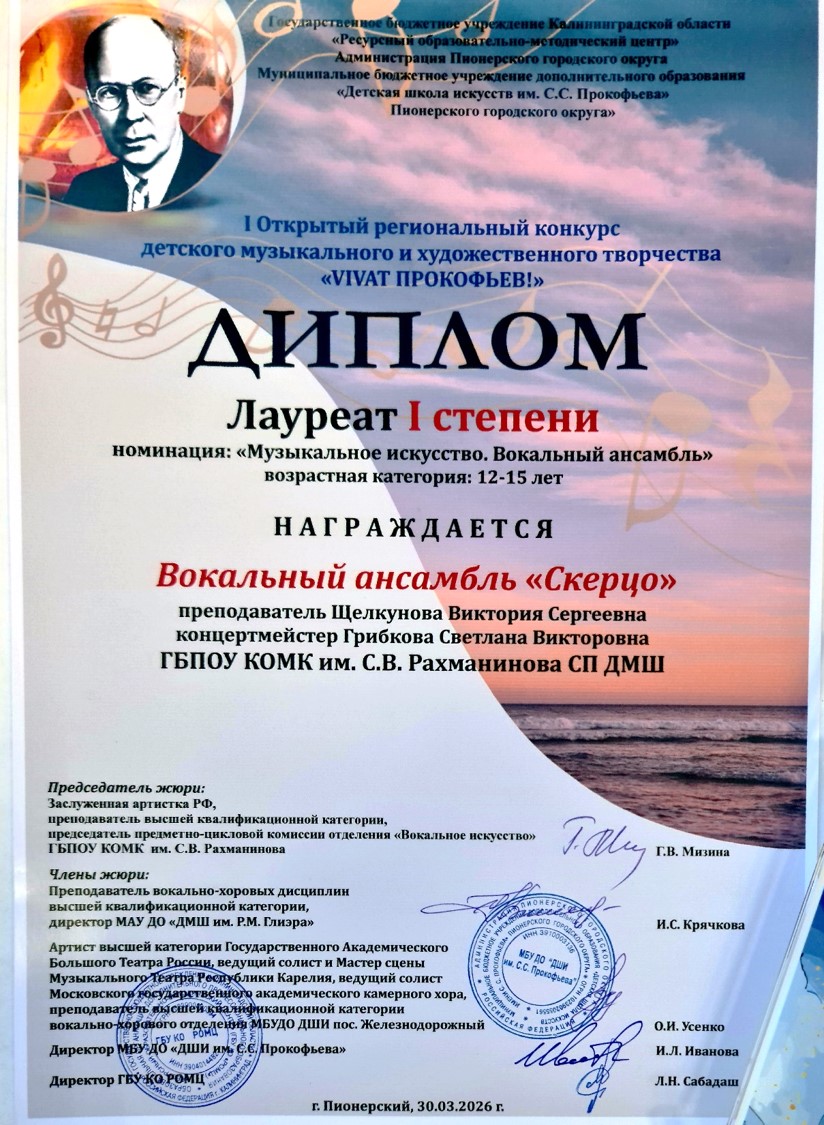 Поздравляем вокальный ансамбль СП ДМШ «Скерцо», рук. Щелкунову В.С. и конц. Грибкову С.В. с победой в конкурсе!