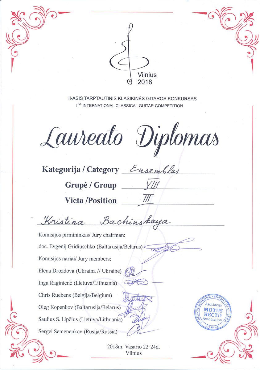 Успешно выступили и студенты Калининградского областного музыкального колледжа им. С.В. Рахманинова: в группе «Учитель-ученик» 3 место завоевал дуэт студентки КОМК Кристины Бачинской и преподавателя Алексея Юрьевича Бачинского;