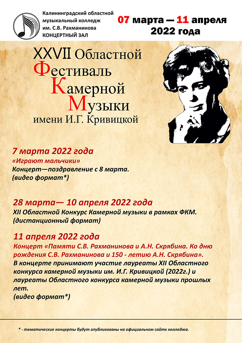 XXVII Областной фестиваль камерной музыки им. И.Г. Кривицкой