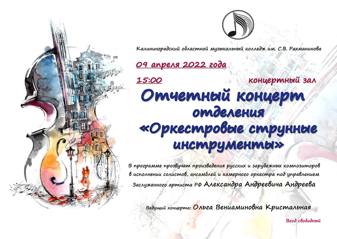 С радостью будем ждать Вас на Отчетном. концерте КОМК им.С.В. Рахманинова 14.04.2022г. в 18:00, где будут представлены ярчайшие номера всех отделений колледжа.