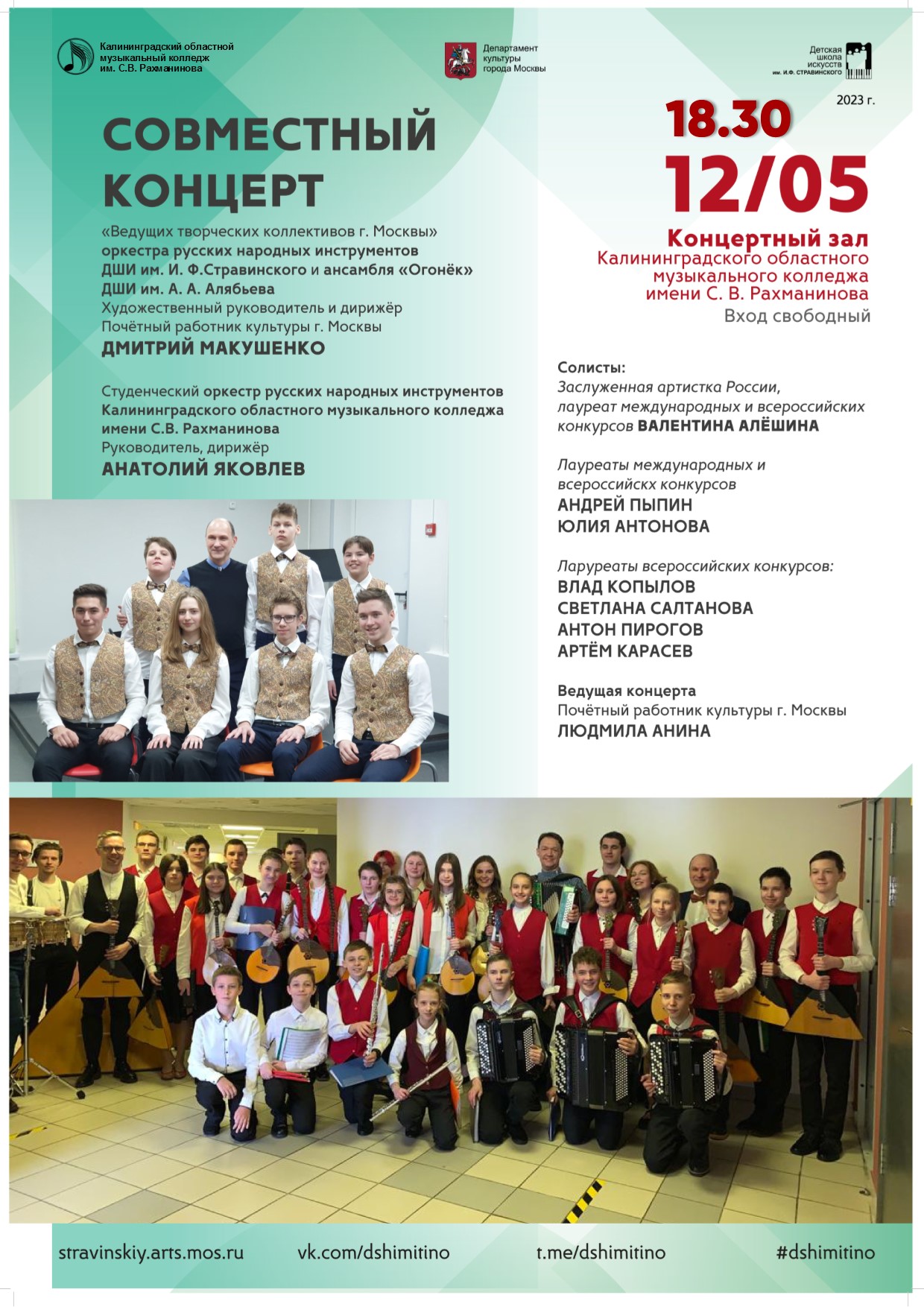 Совместный концерт Студенческого оркестра русских народных инструментов Калининградского областного музыкального колледжа им. С.В. Рахманинова и ведущих творческих коллективов г. Москвы!