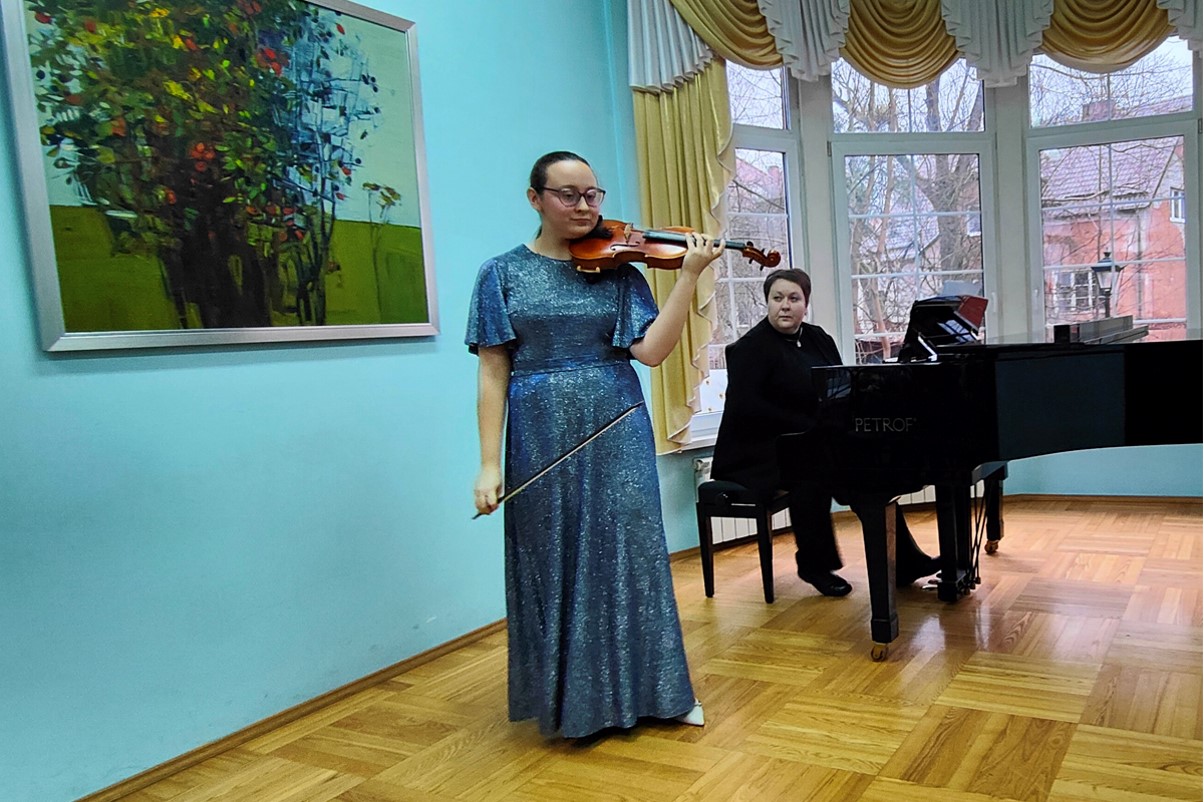 Она и сама сыграла в составе ансамбля, что создало особую атмосферу сотворчества учитель-ученик. К тому же, на протяжении всех тринадцати лет Людмила Николаевна, как руководитель практического обучения студентов колледжа и организатор концертной работы, сопровождает наш совместный проект камерного музицирования студентов и учащихся музыкального колледжа имени С.В. Рахманинова, и всегда долгожданный гость в нашей библиотеке. Яркими были и другие скрипичные сольные номера скрипачей - учащихся школы и студентов колледжа.