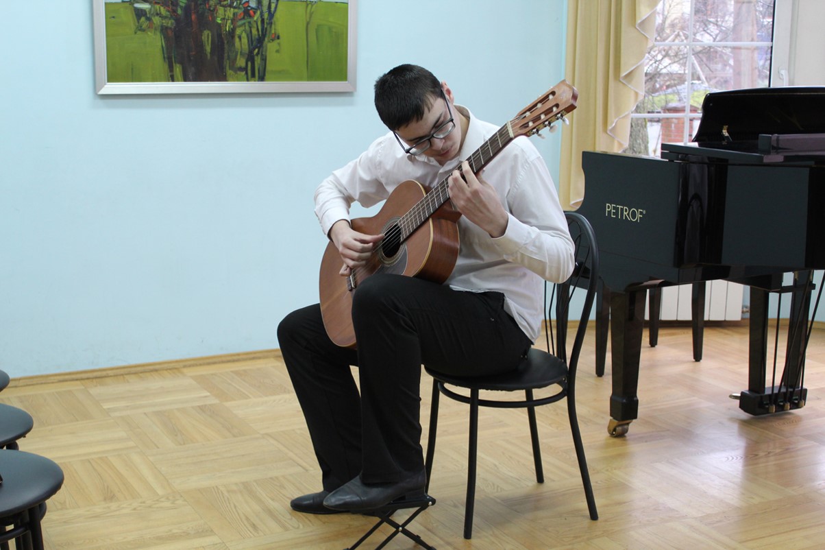 Большим сюрпризом для слушателей был гитарный номер в исполнении студента 2 курса Романа Костюка, он исполнил композицию А.Ю. Бачинского в стиле босса-нова «Солнце, песок и сосны», который и учит его в колледже мастерству игры на гитаре. Эта музыка подарила надежду встречи с теплым морем и радостное ощущение, что весна не за горами.