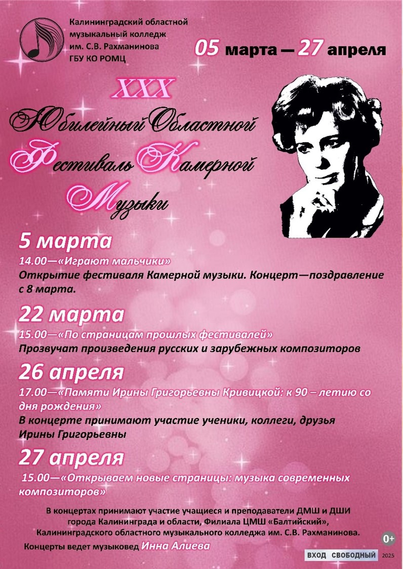 XXX Областной фестиваль камерной музыки им. И.Г. Кривицкой