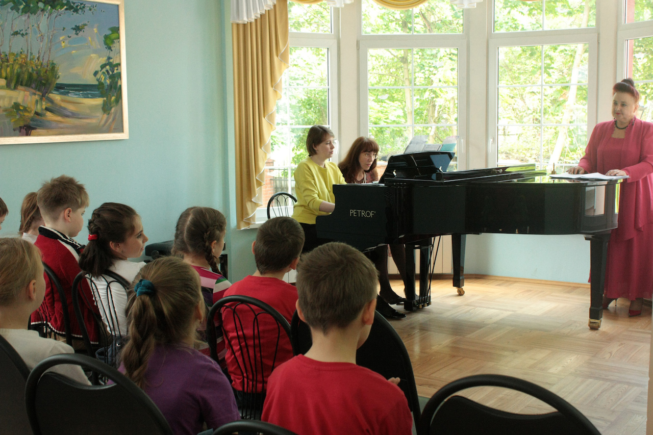 Встреча состоялась в нашем овальном зале в отделе искусств у рояля. Ребята услышали сказки А.Н. Толстого «Золотой ключик, или Приключения Буратино» с музыкальными иллюстрациями Ж. Металлиди, «Аленький цветочек» С.Т. Аксакова и «Жила-была царевна» с музыкой А. Неволовича. Музыка была написана санкт-петербургскими композиторами специально по мотивам русских сказок, и поэтому так органично и с интересом воспринималась слушателями.