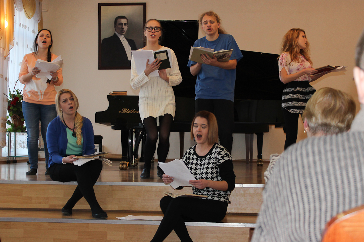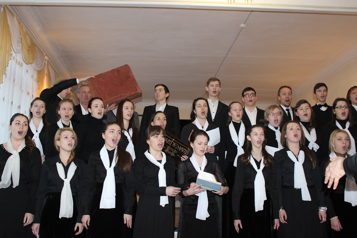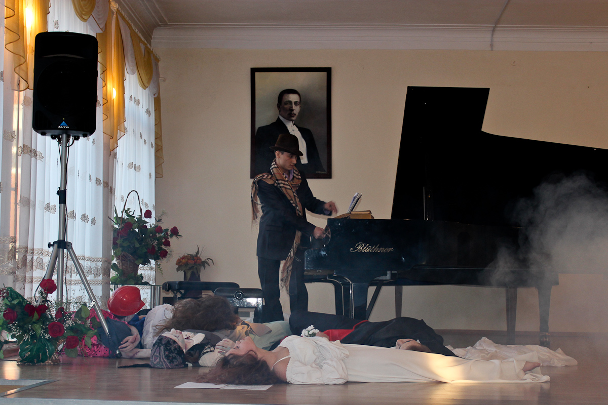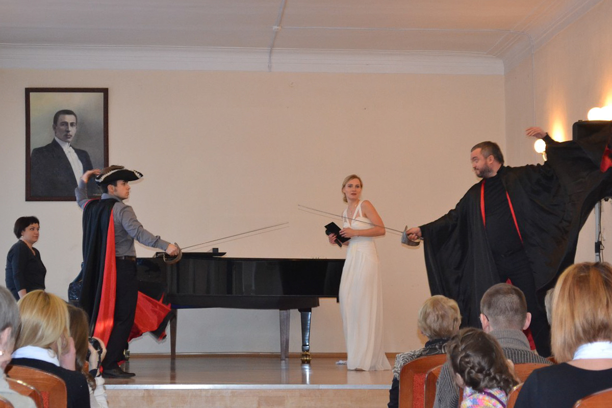 Атмосфера концерта 25-го января была необычной для стен Большого зала Калининградского областного музыкального колледжа им. С. В. Рахманинова. Не просто концерт, а театрализованное представление с самыми разными героями… Современники Фигаро в париках и с пистолетами, испанские идальго, бьющиеся за сердце прекрасной дамы не шпагами, а песнями, наконец, воплощенные фантазии из фильмов ужасов. Фольклорный ансамбль «Матица» порадовал плясовой, правда, в середине песни они грянули современный поп-хит, но в конце концов допели её до конца. А в конце номера на платках девушек оказались буквы: «ДЕНЬ СТУДЕНТА».