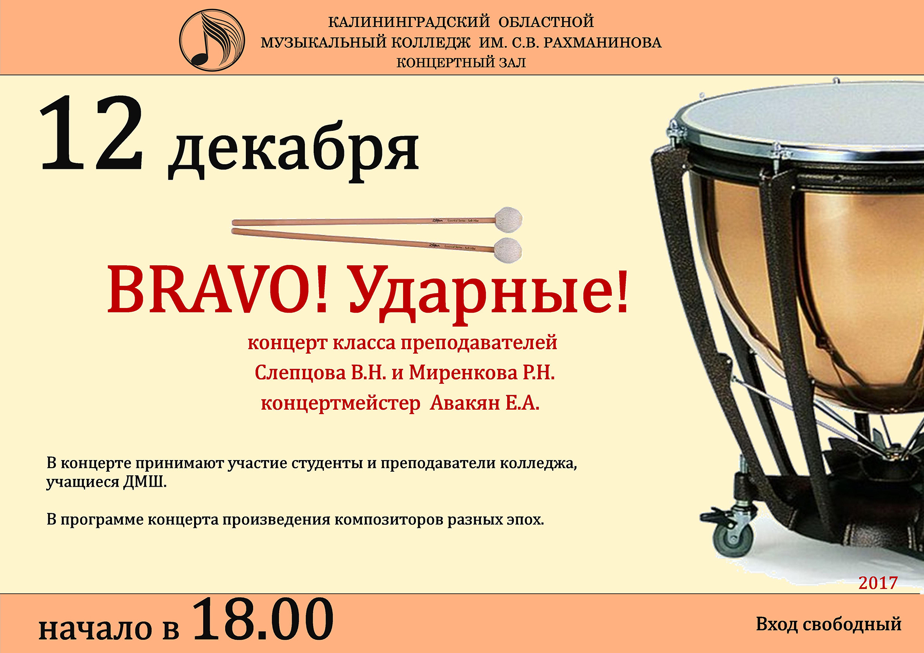 12декабря в 18-00 состоится концерт класса преподавателей Слепцова В.Н. и Миренкова Р.Н., концертмейстер Авакян Е.А.