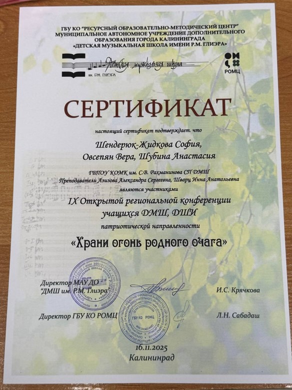 Учащиеся ДМШ колледжа приняли участие в IX Открытой региональной конференции учащихся ДМШ, ДШИ патриотической направленности «Храни огонь родного очага»